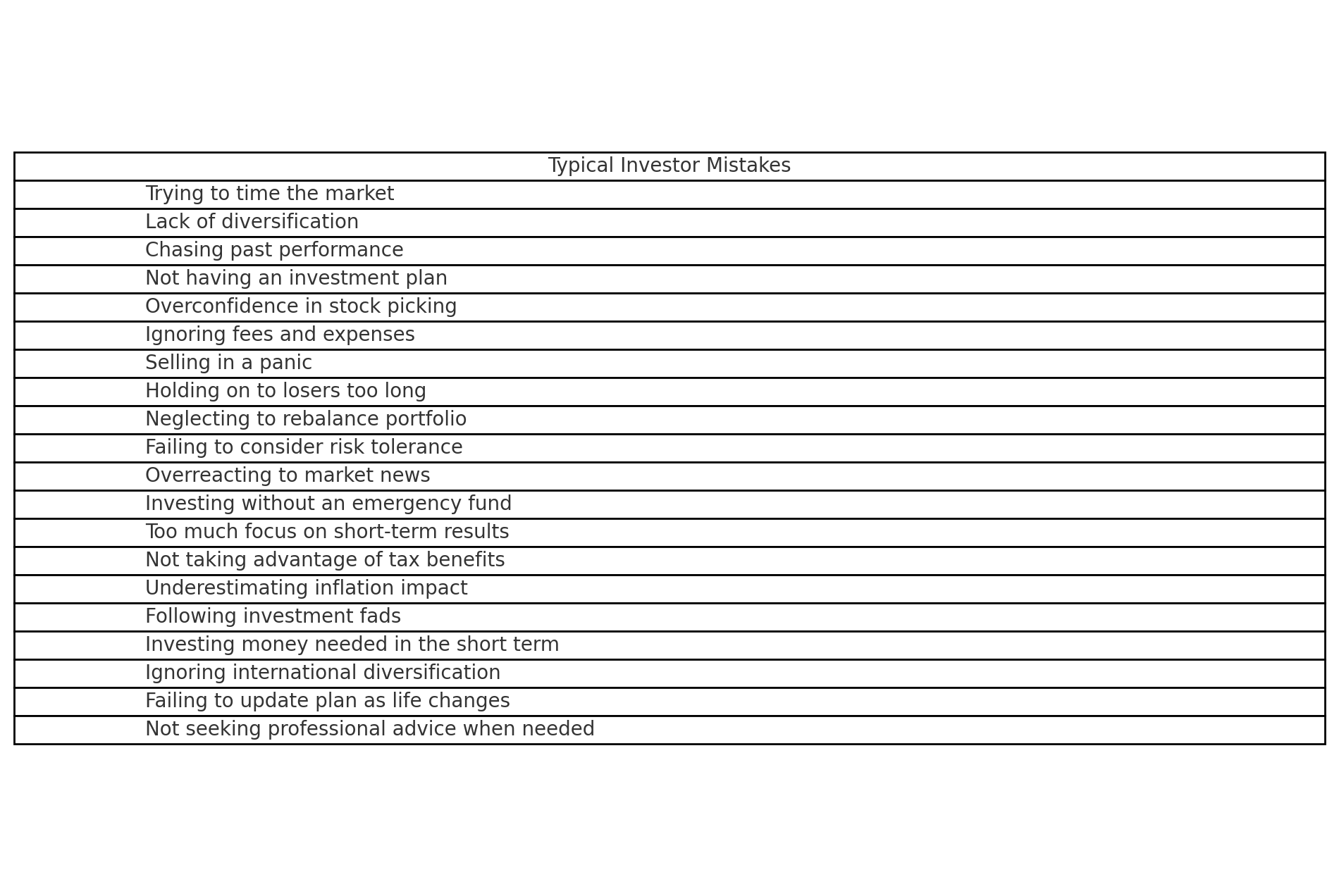 Selling everything after a 20% decline, then watching from the sidelines as markets recover and reach new highs.
